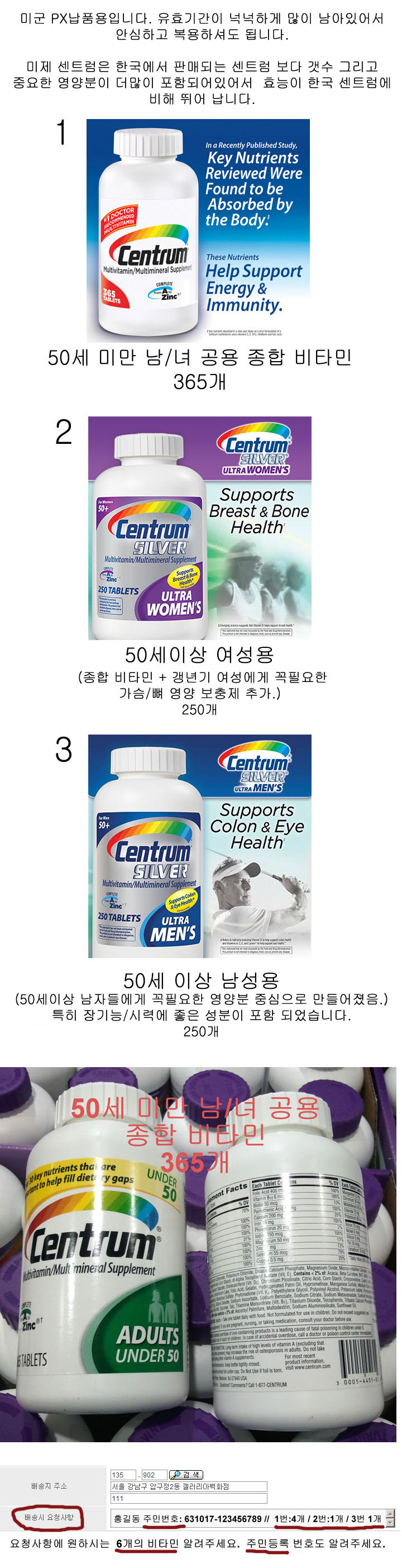 ë¯¸ì œ 센트럼 종합 비타민 * 6개셋트 *